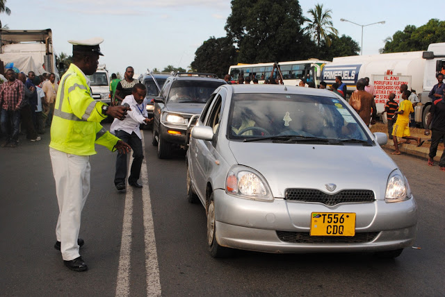 Askari wa usalama barabarani, akiongoza magari hayo wakati yakiwasili mjini Morogoro.
